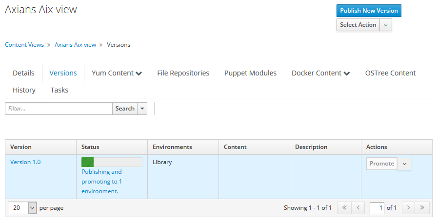 When the publshing procedure is completed, you can click on the Promote button for the Version 1.0.