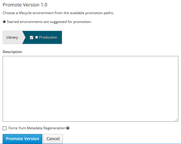 Select the right library by clicking on the checkbox, then click on Promote Version.