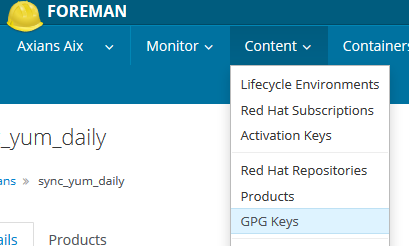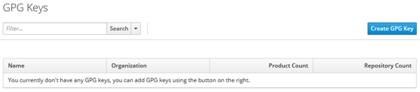 On the Menu bar, click on Content, then on GPG Keys menu item